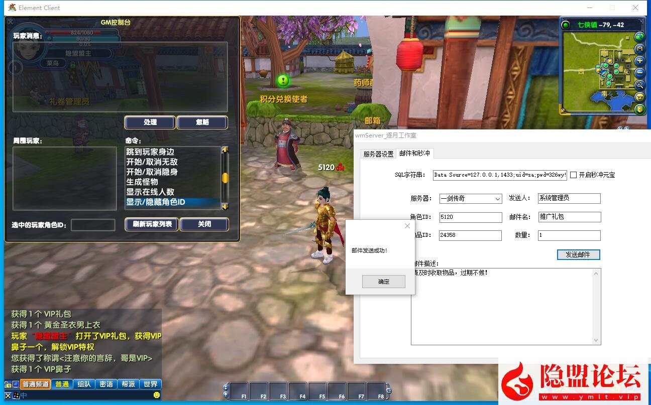 12、不愿意升级的老板可以把账号权限设置成gm ctrl+g 后台刷几个经验怪很快100,经验怪ID 66666