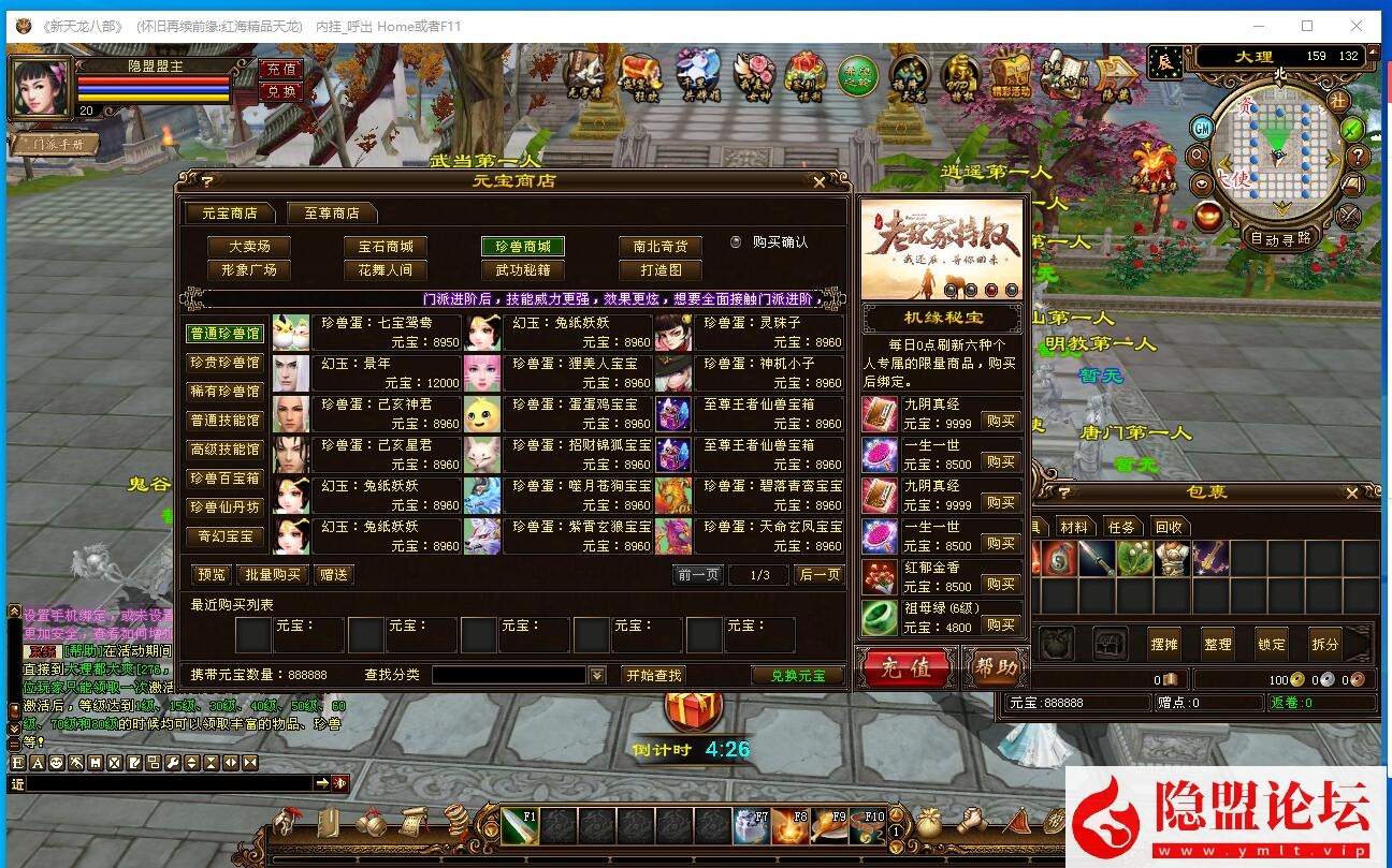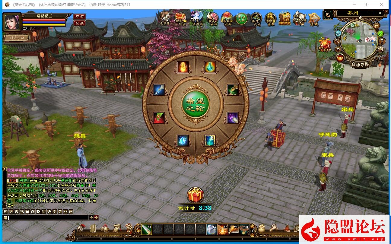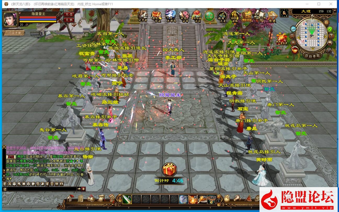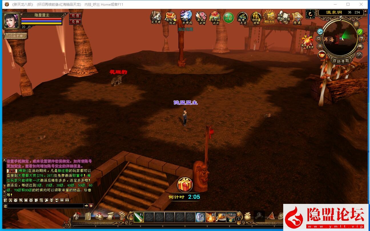 2个小时整点各大野外刷新几十个机器人PK,注意左下角系统消息!