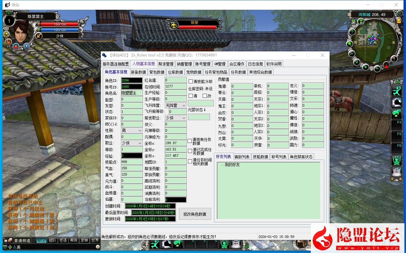 7:河阳仓库银票商店留了两件变态装备出售,还有一些本来官方就有的道具,不喜可以自己删除。