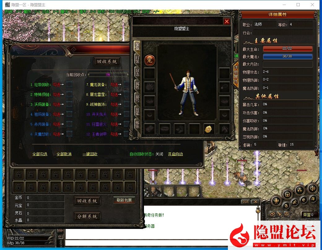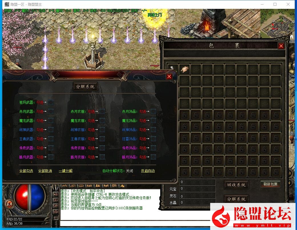 7、添加大背包,并将回收、分解、仓库等按钮整合在背包内