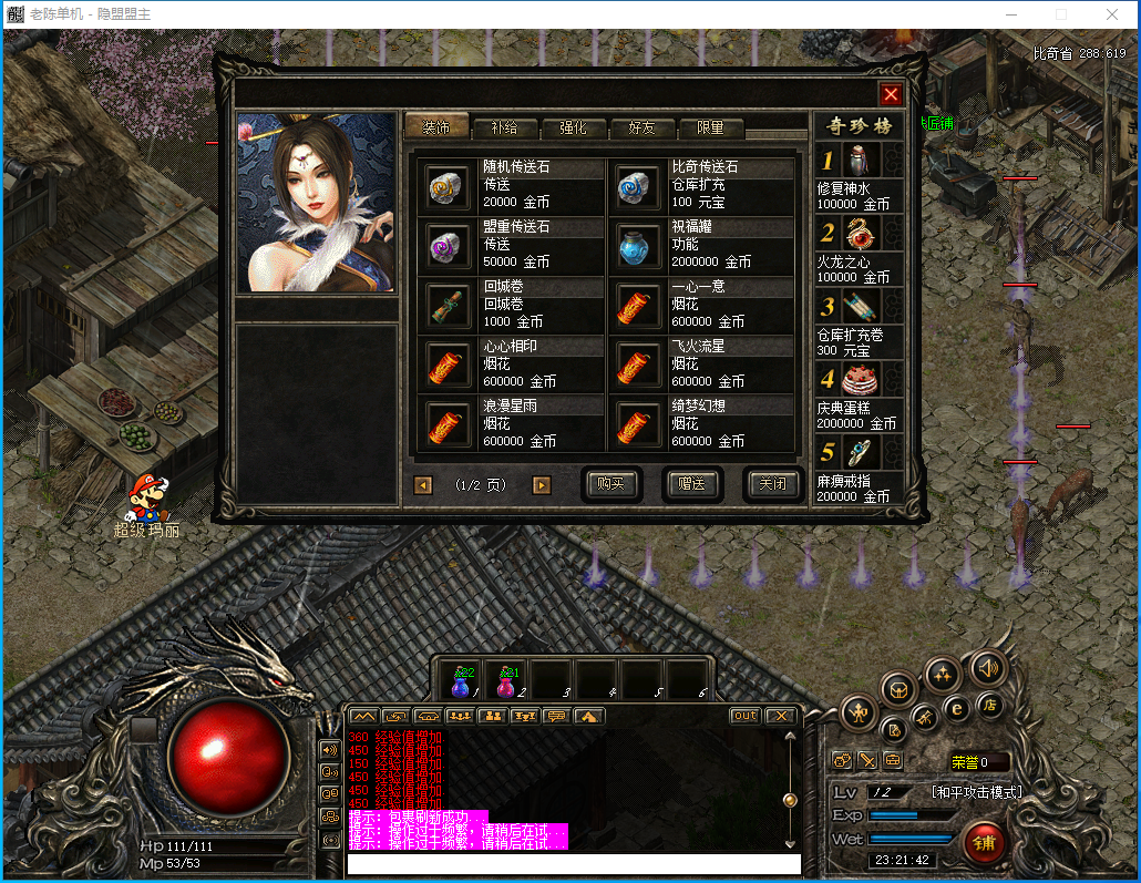 不喜欢做任务的兄弟可以直接绕过此版本,因为该版本所有玩法和功能都是跟着任务进度开启的,共300多个主线任务,一步步带你从银杏村到比奇到封魔到盟重到白日门再到苍月、魔龙、狐月最后进入神界!